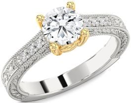 Diamond Platinum & Yellow Gold Round Vintage Engagement Ring