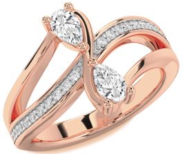 This elegant promise ring features a modern bypass design with a sleek, open-shank silhouette in yellow gold. Two teardrop-shaped gemstones—one a dazzling white and the other a serene blue—face each other in perfect harmony. Accented by a sparkling row of pavé-set diamonds that trace the curves of the band, this promise ring symbolizes unity, trust, and enduring love.