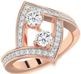 Diamond Rose Gold Round Two Stone Pave Ring
