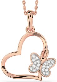 Diamond Rose Gold Silver Heart Butterfly Necklace