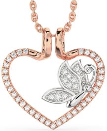 Diamond Rose Gold Silver Heart Butterfly Necklace