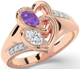 Diamond Rose Gold Silver Heart Two Stone Promise Ring