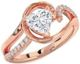 Diamond Rose Gold Silver Heart Solitaire Engagement Ring