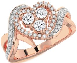 Diamond Rose Gold Silver Heart Three Stone Ring