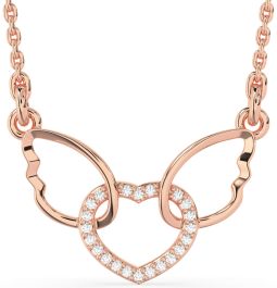 Diamond Rose Gold Silver Heart Wings Interlock Necklace