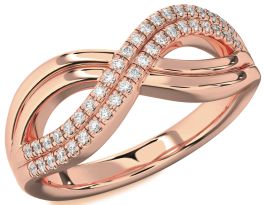 This elegant promise ring features a graceful infinity design in radiant yellow gold. Two polished bands intertwine and are joined by a row of sparkling white stones, symbolizing lasting love. With its timeless curves, clean symmetry, and delicate brilliance, this promise ring is perfect for celebrating deep affection, enduring bonds, and heartfelt commitment.