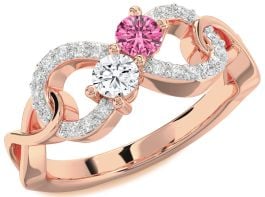 Diamond Rose Gold Silver Infinity Round Two Stone Promise Ring
