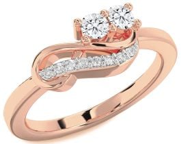 Diamond Rose Gold Silver Infinity Round Two Stone Ring