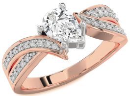 Diamond Rose Gold Silver Pear Solitaire Engagement Ring