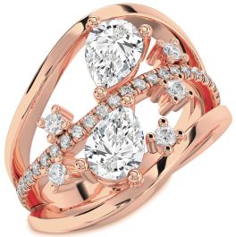 Diamond Rose Gold Silver Pear Three Stone Ring