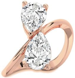 Diamond Rose Gold Silver Pear Two Stone Ring