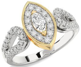 Diamond Silver & 10K gold Halo Marquise Promise Ring