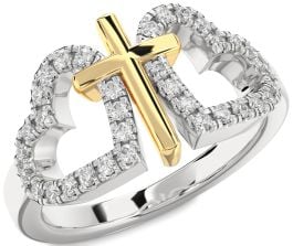 Diamond Silver & 10K gold Heart Cross Ring