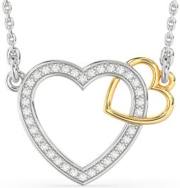 Diamond Silver & 10K gold Heart Interlock Necklace