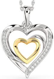 Diamond Silver & 10K gold Heart Necklace