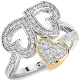 This enchanting promise ring showcases three elegant heart motifs adorned with shimmering pavé-set diamonds, gracefully arranged on a polished yellow gold band. Each heart glistens with micro-set brilliance, while one solid heart is fully encrusted, adding contrast and dimension. Radiating love and luxury, this promise ring is a perfect symbol of enduring affection.