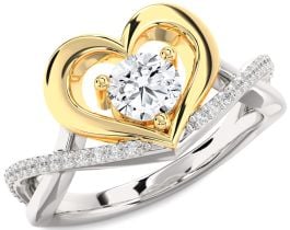 Diamond Silver & 10K gold Heart Solitaire Engagement Ring