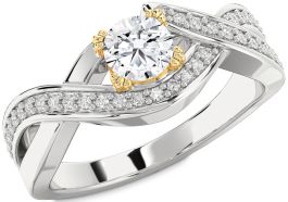 Diamond Silver & 10K gold Infinity Round Solitaire Engagement Ring