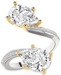 Diamond Silver & 10K gold Pear Two Stone Pave Ring