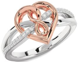 Diamond Silver & 10K Rose Gold Heart Infinity Ring
