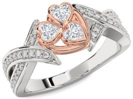 Diamond Silver & 10K Rose Gold Heart Three Stone Ring