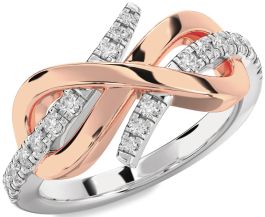 Diamond Silver & 10K Rose Gold Infinity Round Ring
