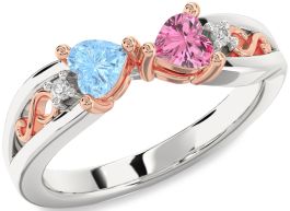 Diamond Silver & 10K Rose Gold Infinity Two Heart Promise Ring
