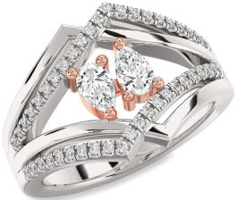 Diamond Silver & 10K Rose Gold Pear Two Stone Ring