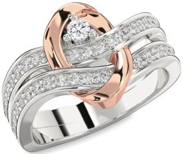 Diamond Silver & 10K Rose Gold Round Promise Ring