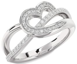 Radiating with elegance, this ring showcases a sculpted heart embraced by fluid bands that gracefully sweep across the finger. Sparkling accents highlight the heart’s contour and flow along the open shank, creating a luminous and balanced design. Symbolizing the continuous journey of love, this piece is a radiant reminder of passion, unity, and the beauty of shared connection.