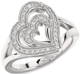 A layered expression of love, this ring showcases a trio of graduating hearts elegantly nested within one another. Each heart is outlined with shimmering brilliance, creating a radiant cascade of sparkle that draws the eye inward. The openwork design and split band give the piece depth and modern sophistication, symbolizing a connection that grows stronger with every heartbeat.