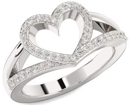 This luminous ring showcases an open heart shimmering with radiant detail, beautifully framed by twin bands that echo its shape in perfect harmony. Each curve is lined with delicate brilliance, adding sparkle to its modern yet timeless form. A graceful celebration of connection and unity, this ring captures the elegance of loveâs embrace with every glimmer and curve.