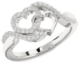 Radiating affection and unity, this enchanting ring features two interlocked hearts—one sparkling with brilliance, the other gleaming in smooth polish—joined in perfect harmony. Flowing lines adorned with shimmering accents sweep across the top, adding movement and grace. A beautiful symbol of shared love, this design speaks to connection, balance, and lasting togetherness.