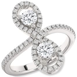 Diamond Silver Infinity Round Two Stone Pave Ring