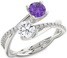 This elegant promise ring features two brilliant round stones—one in deep purple and the other in dazzling white—symbolizing the union of two distinct yet perfectly balanced souls. Set in polished yellow gold with a gently twisting band adorned in sparkling accent diamonds, this ring is a radiant expression of love, loyalty, and a future shared. A perfect token of commitment.