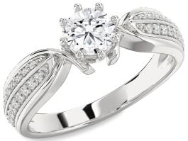 Diamond Silver Round Solitaire Pave Engagement Ring