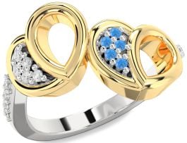 Diamond & Swiss Blue Topaz Gold Silver Heart Promise Ring