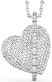 This bold heart pendant dazzles with a lavish array of shimmering accents, creating a surface that sparkles from every angle. A vertical band adds contrast and structure, highlighting the brilliance of the surrounding design. Striking yet graceful, this piece captures the essence of love that shines brightly and confidently—full of passion, presence, and radiant charm.