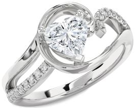 A captivating heart-shaped center glows at the core of this enchanting engagement ring, encircled by a graceful, swirling design that feels both modern and romantic. The band gently splits and reunites with a row of twinkling accents, symbolizing the journey of two souls becoming one. This piece embodies timeless love with a touch of contemporary flair.