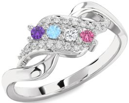 This graceful Mother’s ring features four brilliant stones, each symbolizing a cherished child, set between sparkling ribbons that flow like an embrace. The intertwining design reflects a mother’s infinite care, capturing the unique place each child holds in her heart. A timeless tribute to the strength, beauty, and harmony found in motherhood’s unbreakable bond.