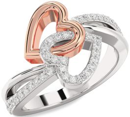 Two hearts unite in this enchanting design, one polished and the other sparkling with radiant accents, interlocking in a symbol of harmony and affection. The flowing band wraps around with elegant symmetry, adding dimension and brilliance to the romantic form. A beautiful expression of lasting love, this ring speaks to bonds that are deeply connected and endlessly cherished.