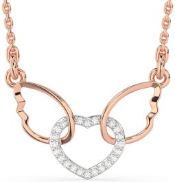 Diamond White Rose Gold Heart Wings Interlock Necklace