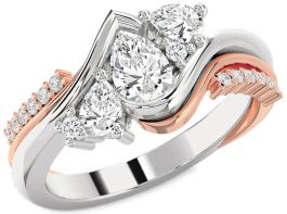 Diamond White Rose Gold Pear Three Stone Engagement Ring