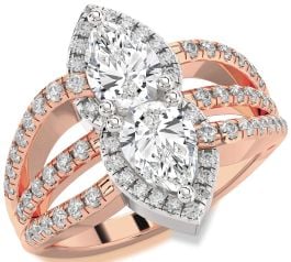 This Promise ring features a captivating duet of pear-shaped gemstones—one soft pink and the other icy blue—each encircled by a halo of dazzling white stones. The split shank design, lined with pavé-set diamonds in polished yellow gold, adds brilliance and symmetry. A vibrant and romantic expression of commitment, this Promise ring is both bold and heartfelt.