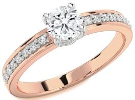 Diamond White Rose Gold Round Solitaire Pave Engagement Ring