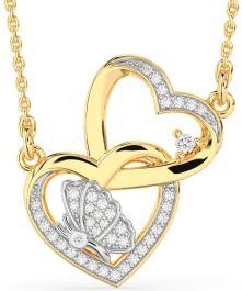 Diamond White Yellow Gold Heart Butterfly Necklace