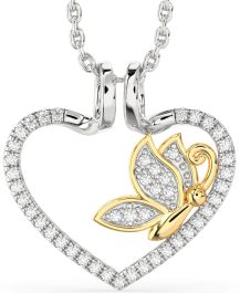 Diamond White Yellow Gold Heart Butterfly Necklace
