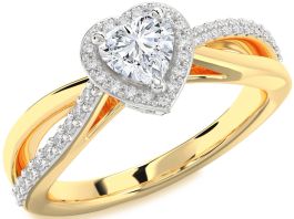 Diamond White Yellow Gold Heart Halo Engagement Ring