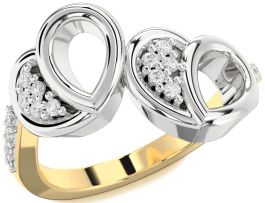 This radiant promise ring features a trio of polished, open teardrop-shaped hearts, each delicately inlaid with clusters of brilliant white stones. The smooth yellow gold band enhances the overall elegance, while additional stones on the shoulders add a graceful sparkle. Symbolizing unity, affection, and loyalty, this promise ring is a heartfelt expression of enduring love.