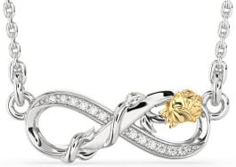 Diamond White Yellow Gold Infinity Flower Necklace